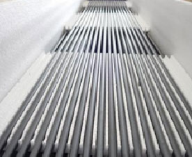 矩型塊孔式石墨熱交換器由截面為矩形的單元換熱塊疊裝而成,整體強(qiáng)度高,耐熱沖擊性能好,傳熱效率高使用壽命長(zhǎng),本公司常規(guī)生產(chǎn)均為內(nèi)聯(lián)式單向耐 腐蝕JK型與KS型兩系列,JK型側(cè)板為小塊,規(guī)格變化容易維修方便,KS型側(cè)板為 整體,增加上、下兩排緊固鏍柱.載熱體 分布更均勻。相同換熱面積時(shí)矩形塊孔式 設(shè)備高度比圓塊式小。本公司可根據(jù)用戶 要求生產(chǎn)外聯(lián)式、臥式安裝,雙向耐腐蝕 等具有其它特性之矩形塊孔式石墨